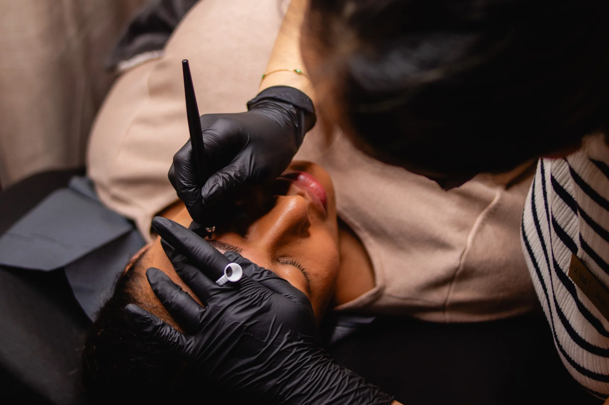 Using a manual tool with fine, sterile needles, the practitioner makes small, precise cuts in the epidermal layer of the skin. These cuts mimic the natural direction and thickness of eyebrow hairs, creating a realistic effect. The pigment is then deposited into these tiny incisions.